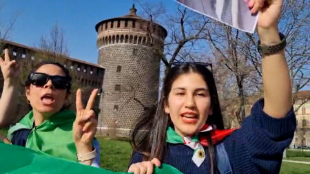 Tante donne iraniane, a Milano, ringraziano Trump e “Bibi” per aver attaccato il “regime sanguinario”