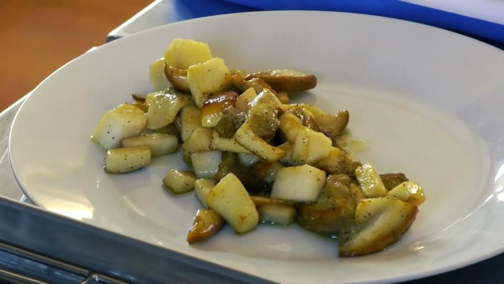 Risotto con crema di zucca, porcino arrosto, guanciale e salsa al gorgonzola