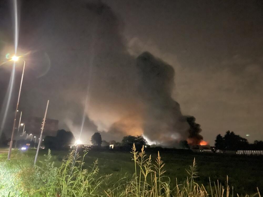 Fiamme nella notte in un’azienda a Rho di riciclo di apparecchiature elettroniche. Grossa colonna di fumo