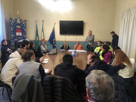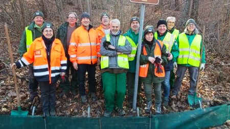 Le GEV al lavoro per mettere l’istallazione delle barriere lungo la strada a protezione degli anfibi