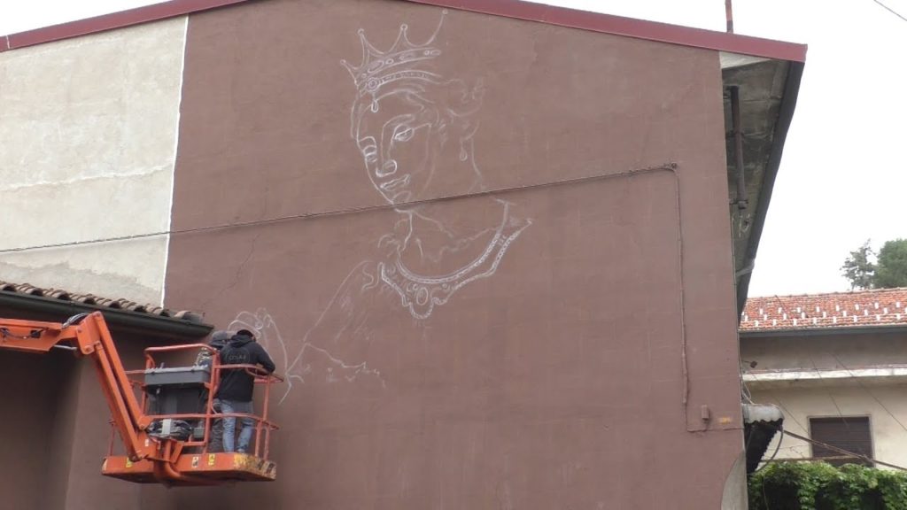 Il noto writer varesino sta realizzando un grande murales sulla parete dello storico albergo sempione. A Rete55, in esclusiva, le immagini dell’artista all’opera