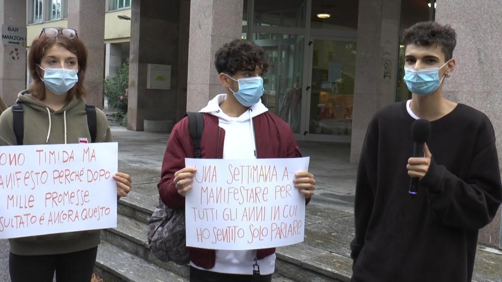Gli studenti del liceo Manzoni di Varese hanno manifestato questa mattina davanti ai cancelli dell’istituto: “Proseguiremo per tutta la settimana”, dicono