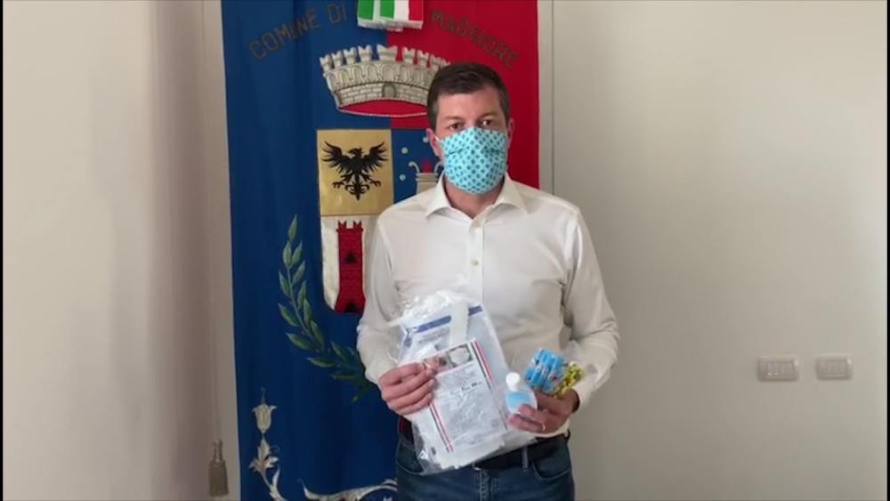 Il sindaco Pietro Zappamiglio presenta il kit di precauzione che verrà fornito a tutti i piccoli partecipanti dei Centri Estivi. Un’iniziativa resa possibile dalla felice sinergia coi privati