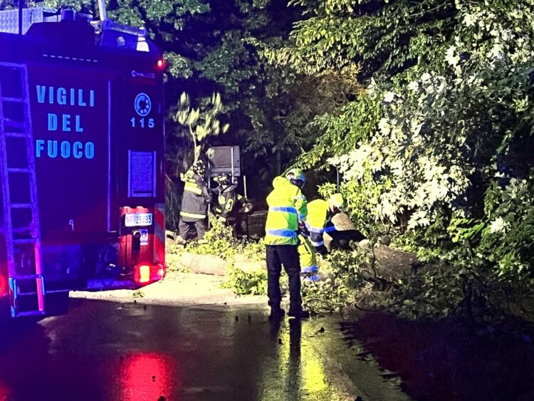 Buguggiate colpita dalla tempesta: abbattuto un albero in via Montello. Intervento immediato
