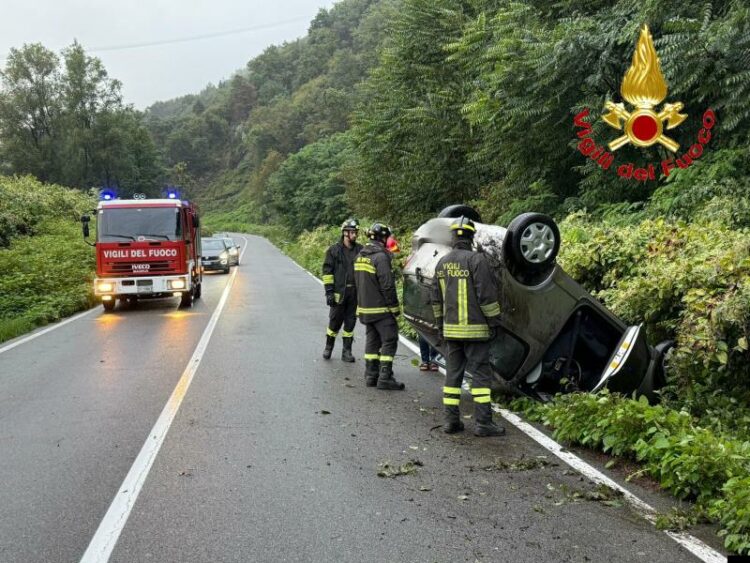 Luino: Auto ribaltata in un fosso, nessun ferito