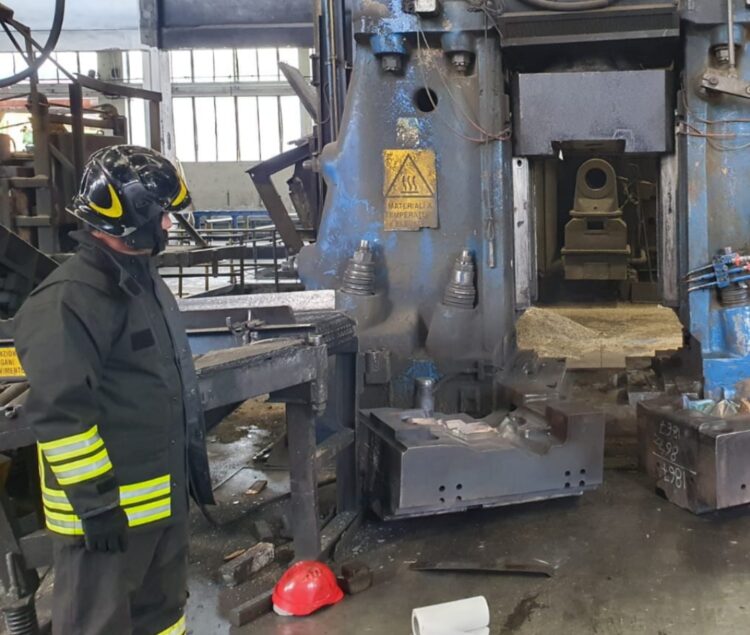 L'incidente si è verificato nel pomeriggio di venerdì in un'azienda di stampaggio a caldo di particolari in acciaio.