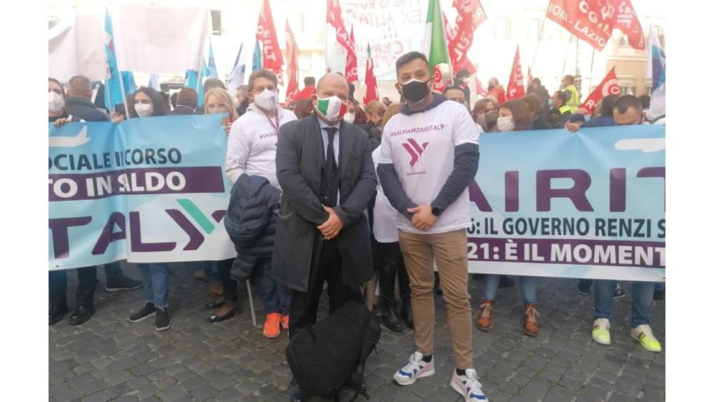 Lavoratori in piazza, a Roma, per invocare il prosieguo degli ammortizzatori sociali e per mettere i potenziali investitori nelle condizioni di poter rilanciare la compagnia. Deidda: “Tavolo unico con Alitalia, serve lungimiranza”