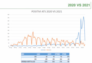 Indicativo il confronto con lo stesso periodo dello scorso anno. Nell’ottobre 2020 il boom di casi e ospedalizzazioni aveva costretto a ricorrere al lockdown, oggi, il trend resta costantemente in calo.