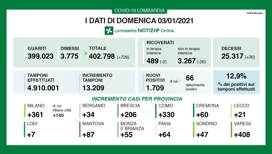 Nel varesotto i positivi aumentano di 408 unità e riporta la provincia in cima alla triste classifica lombarda