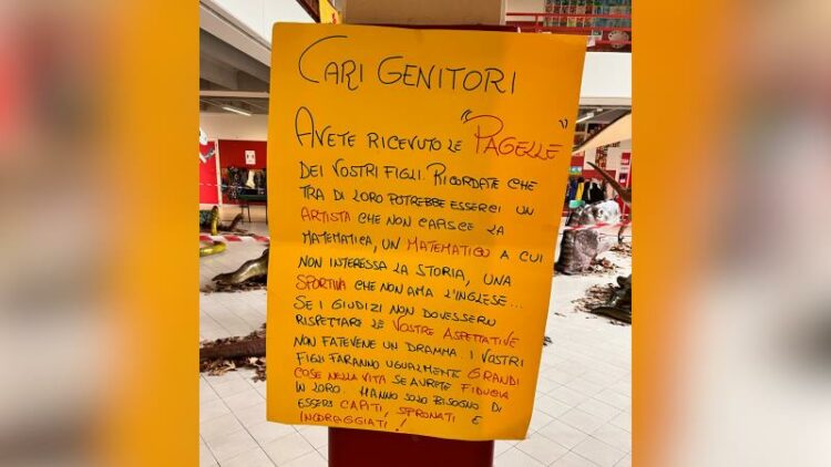 “Una frase che esiste già sul web e che il corpo docenti ha voluto esporre per placare le ansie dei genitori e rassicurali” ha spiegato la dirigente scolastica Raffaella Ferrari. “Non è il voto a rappresentare il valore di una persona” continua la dirigente “vorrei che le famiglie avessero più fiducia nell’istituzione scolastica”.