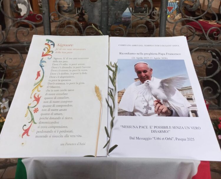 Per l’occasione, all’interno della chiesetta è esposto uno stralcio del messaggio accompagnato da una fotografia del Pontefice, visibili fino al 25 aprile. Un segno semplice ma significativo, affidato al silenzio e alla meditazione, per custodire un’eredità spirituale che continua a interrogare il presente.