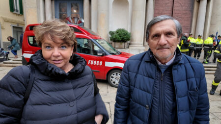 Una coppia di varesini realizza a mano uno striscione di ben 20 metri per accogliere il nuovo prevosto