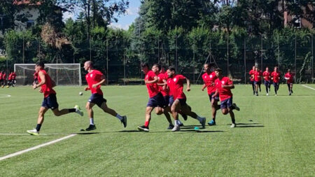 I biancoblu scaldano i motori in vista del debutto di domenica in Coppa Italia contro la Pergolettese