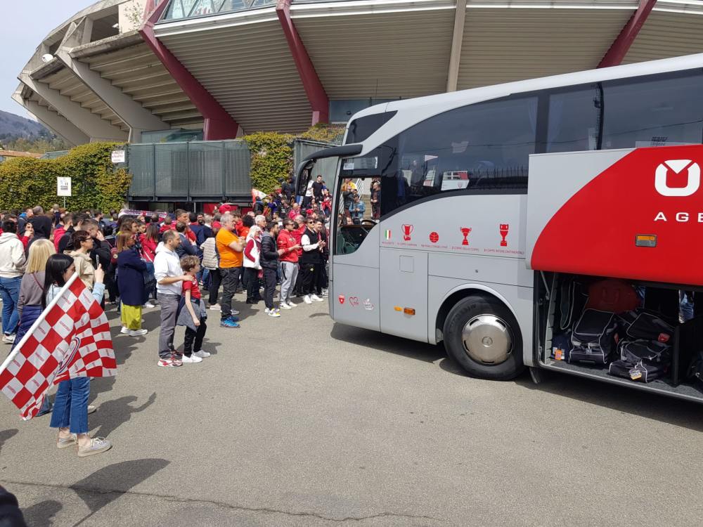 Varese: tifosi e bandiere, a Masnago, per sostenere la squadra in partenza per Trieste