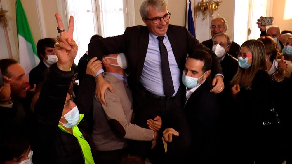Il sindaco uscente viene riconfermato con oltre 2 mila voti di scarto sullo sfidante Matteo Bianchi: “Il grande sconfitto? Salvini. La prima cosa che farò? Incontrare gli eletti in consiglio comunale”. L’esponente PD ha aumentato la dote del primo turno di 1.046 consensi. Grande festa a Palazzo Estense