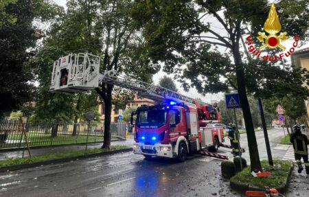 Vigili del Fuoco al lavoro con diverse squadre per piante e rami abbattuti dalle forti raffiche di vento