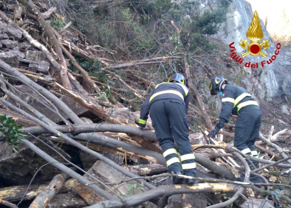 Vigili del fuoco sulla SP5, dove uno smottamento ha riversato sulla carreggiata detriti e materiale