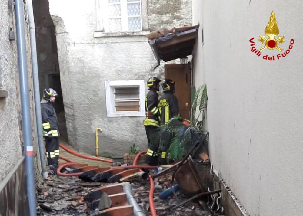 Incendio a Maccagno, in frazione Biegno: tre abitazioni distrutte. Intervento difficile