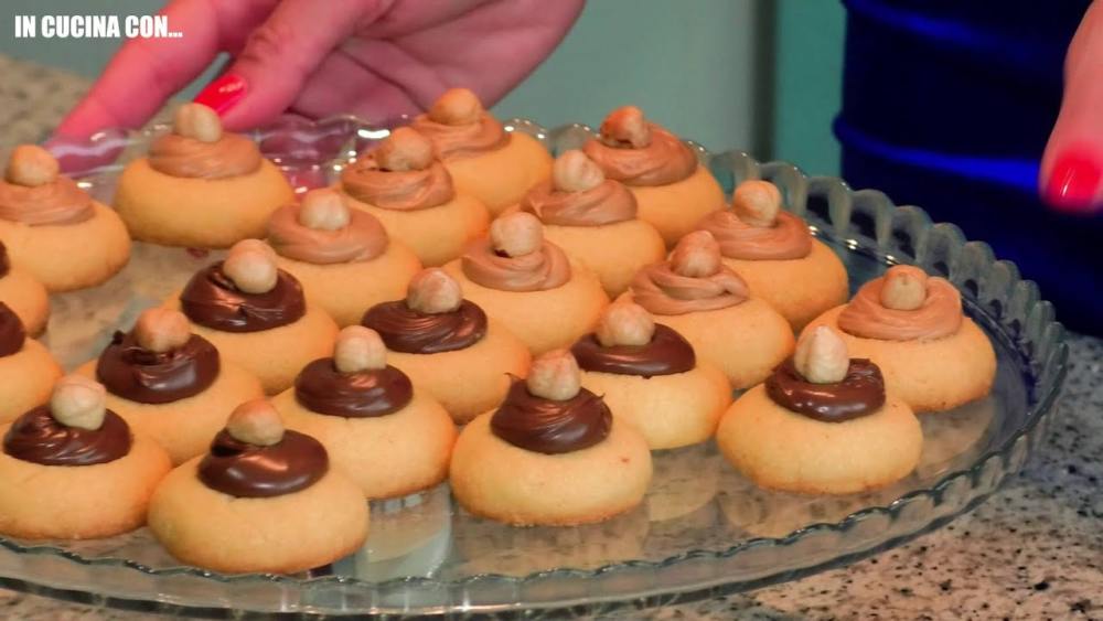 Prepariamo oggi biscotti di pasta frolla farciti con crema alle nocciole di due colori.