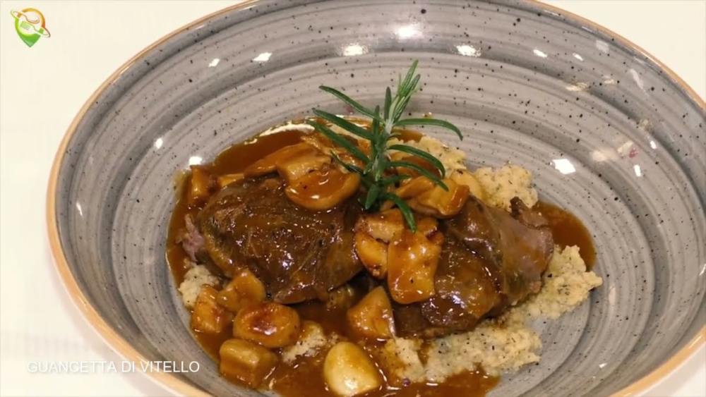 Guancetta di vitello cotta a bassa temperatura con polenta ticinese e funghi porcini