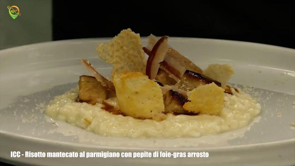 Risotto mantecato al parmigiano con pepite di foie-gras arrosto